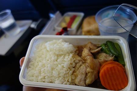 首先是台北飛東京成田的飛機餐,這個叫做冬瓜雞肉飯,白飯吃起來像是沒煮好,有一種乾掉的飯再泡水的感覺,米心很硬總之很難吃。