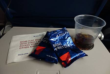 上了飛機以後先發小餅乾給我們吃,這個pretzels非常鹹。