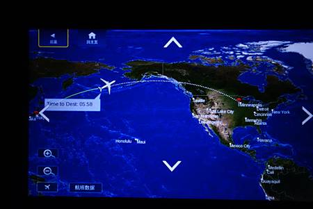 幸好飛機上還是有很多中文電影可以看,沒事還可以切換到目前航程看看還要飛多久才會到。