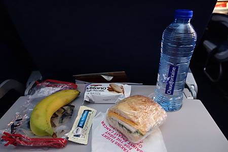 消夜的麵包很乾,包的好像是火雞肉和cheese吧,吃起來還不賴我也是全部吃完了。