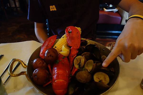 這間位在Downtown Disney的Fulton's crab house外觀就像一艘船,非常好認,而且也很好訂位。這家餐廳需要使用兩個Table service,但我覺得非常值得。主打的當然就是Crab,不過我是因為很想吃龍蝦才定這間餐廳的。