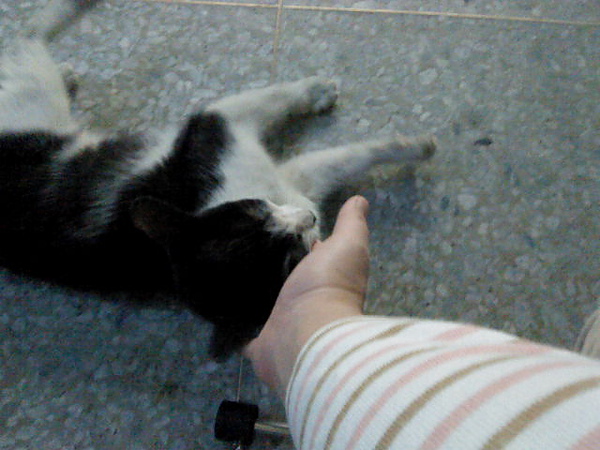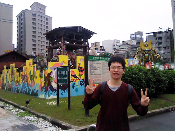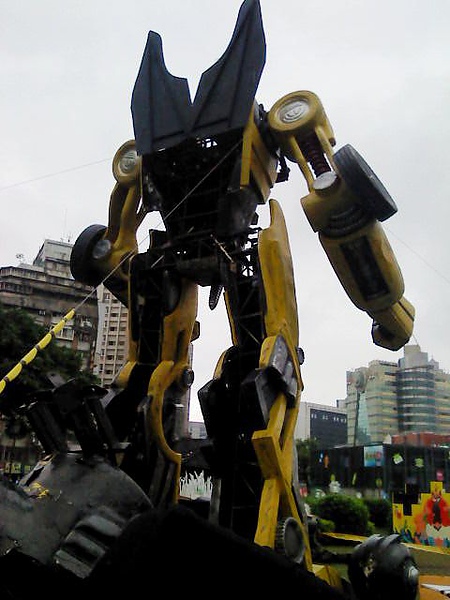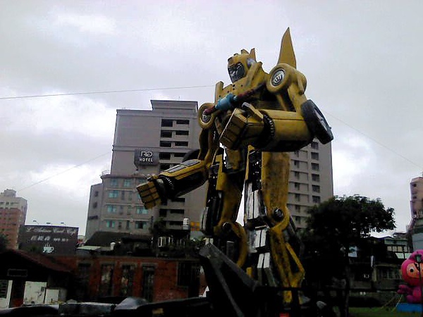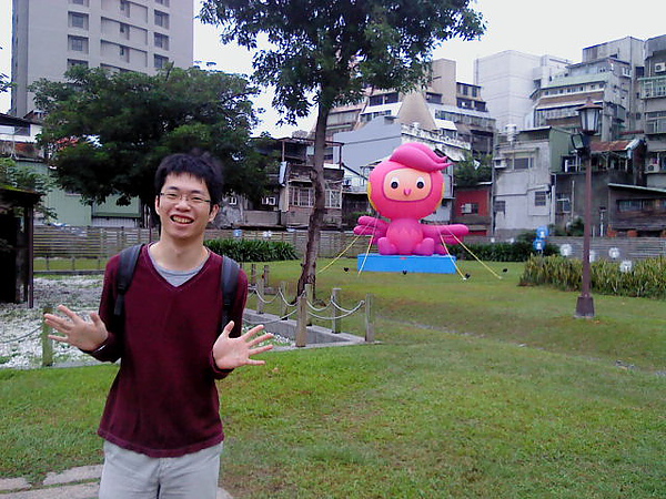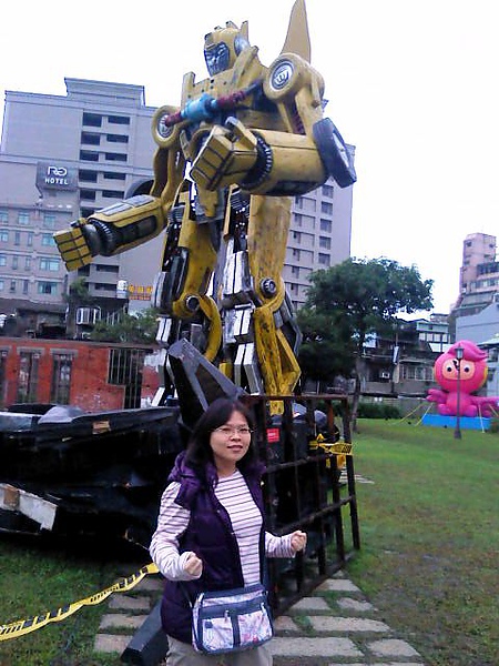 順便拍一下後面那隻怪雞(還是螃蟹?)。 女朋友在學它的動作。