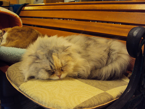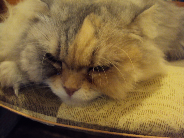 整顆頭非常圓。但花花也不太理人,後來還跑去睡覺了。