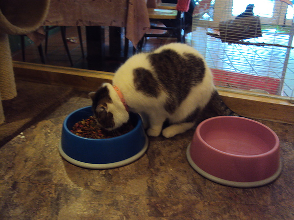 上週五我請假和女朋友去芝山站的貓花園看貓吃飯。
