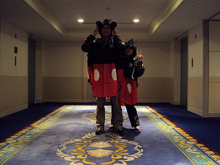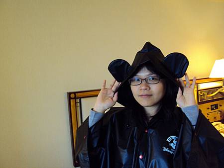 換上今天剛買的米奇雨衣,順便把濕掉的衣服弄乾。