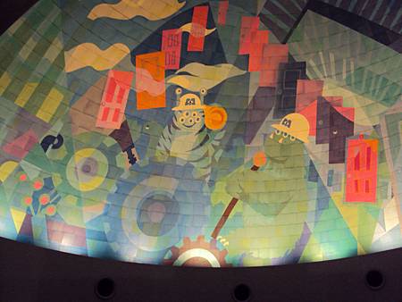 然後我們玩這個Monster Inc.,這又是排隊的地方,天花板很漂亮。