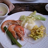自助取餐區非常豐富,還有蝦子可以煮!這蝦很新鮮,我看好多人吃一大盤蝦。