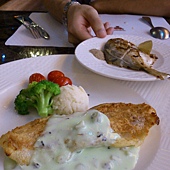 ← 我的主餐來了,非常酥脆好吃。(上面那個煎白鯧也是現點現作)