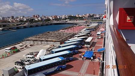 第3天靠岸那霸,一樣有好多遊覽車等待中。